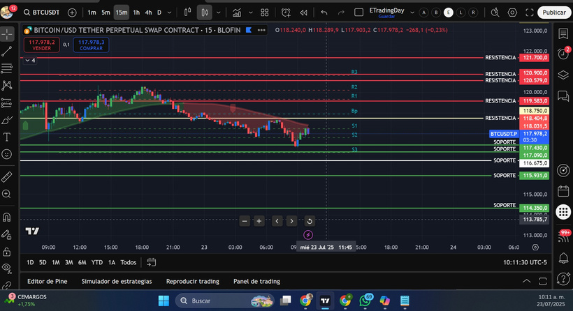 - Resistencia: $118,000 y $120,000 (zona de oferta institucional)