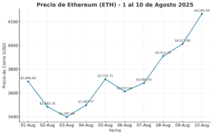 Gráfico: Precio de Ethereum (1–11 de agosto de 2025)